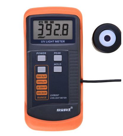 顯示: 3 3/4位液晶顯示屏,最大讀數(shù)3999. 測量范圍:0-400 mW/cm2, 四檔位測量;400μW檔,4000μW檔,40mW檔,400mW檔(1000 μW/cm2 = 1 mW/cm2) 傳感器波長范圍:275nm–325nm 探測器的光譜:峰值297nm,50%以上透過率波段285 nm到310 nm 準(zhǔn)確度:±(8%FS + 2dgt),帶外區(qū)雜光小于0.1% *在UVB光源下進(jìn)行校準(zhǔn),并與標(biāo)準(zhǔn)UVB輻照計進(jìn)行比較 *測試環(huán)境下的射頻場強(qiáng)度小于3伏/米,頻率低于30兆赫 傳感器結(jié)構(gòu):紫外增強(qiáng)型光電二極管和UVB波段過濾校正鏡 取樣率:2次/秒 過載顯示:顯示‘OL’ 重量:350克(含電池) 操作溫濕度:0℃ to 40℃(32℉-104℉) 0~80%Rh 電源:直流9V 6F22型電池 耗電量:直流約2.7毫安 尺寸:表身 160x78x43mm ,傳感器 φ40x35mm |